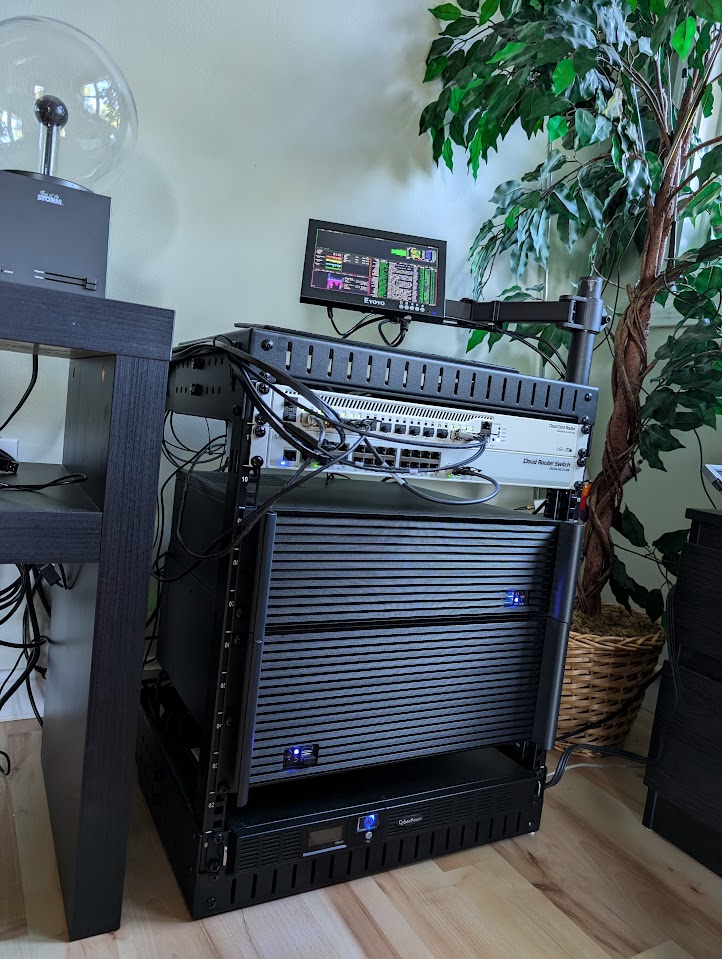 My base of operations, plain and simple, but not really simple. I have local raid on separated storage, with multiple offsite backup systems at 2 other properties. This is where I do all my system setup tests and continue on my never ending journey to escape the cloud. Last I checked there are 87 docker services running. I have fully contained VRFs so I can layer 2 or 3 in to any of my networks, but keep my systems separate.